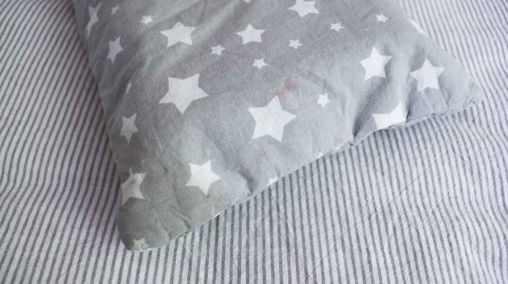 Prilikom kupnje odabrala sam ovaj dezen jer su mi se zvjezdice jako svidjele, ali danas ne bih odabrala tu vrstu pamuka. Tanak je i jako mekan, i nekako sam imala osjećaj kao da je previše “maramičasti” i jako se lako gužva. Fotografije ove pidžamice rijetko su mi kad dobro ispadale jer bi ju prethodno trebala ispeglati, a ja peglu nemam kod kuće.
